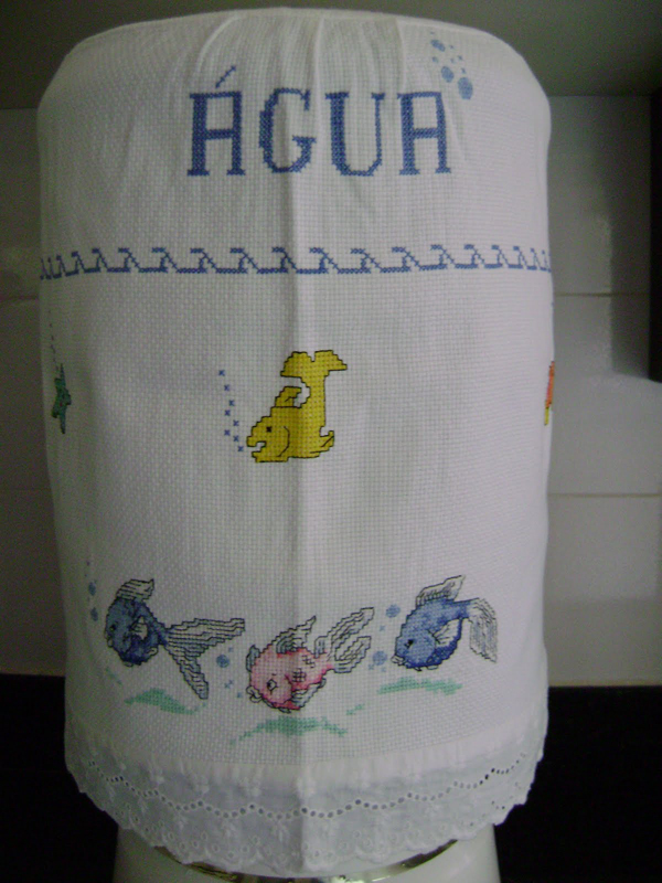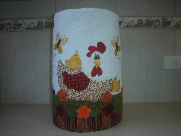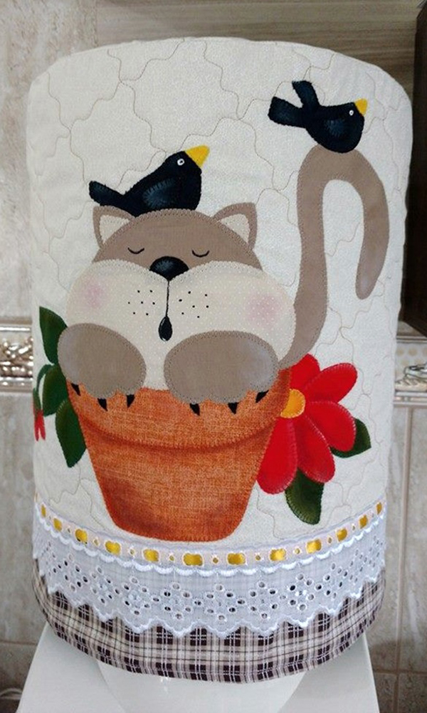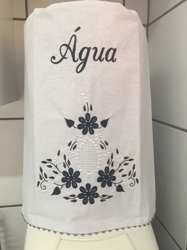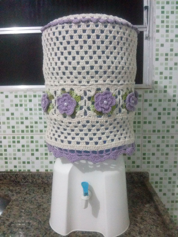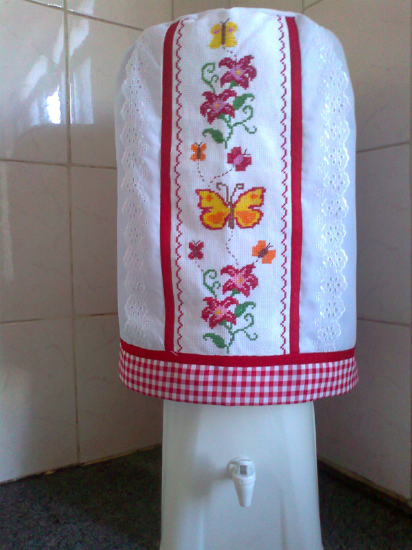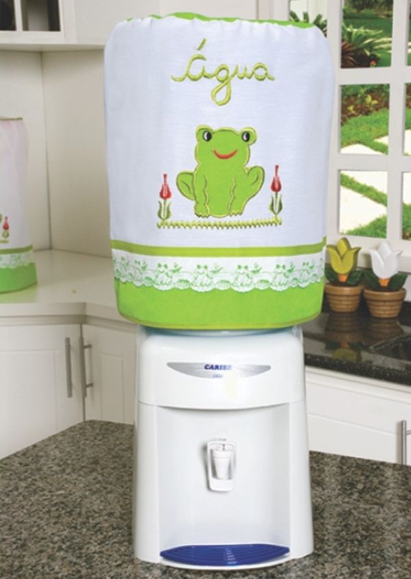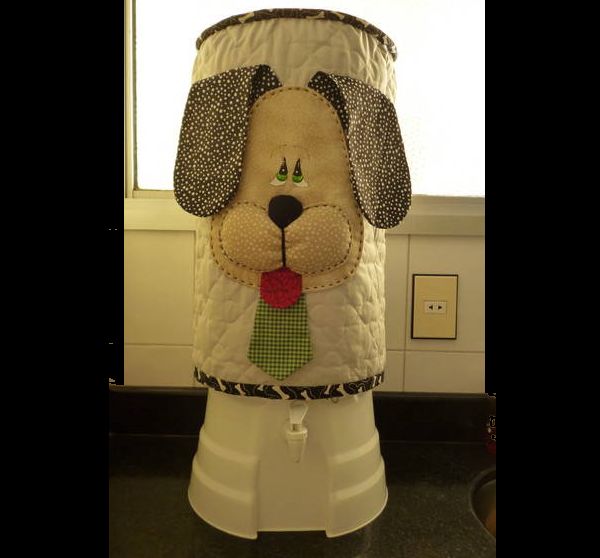 Para quem gosta de artesanatos mais elaborados pode fazer em casa uma capa para galão de água com aplicações em alto-relevo. Faça bichinhos fofos ou flores simpáticas e costure em sua capa, que pode ter o modelo que você desejar.