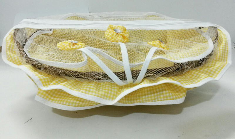 Você pode criar um jogo para cozinha e acrescentar uma cobertura para a sua cesta de pão. Caso você já possua uma cesta em casa você pode apenas criar a cobertura, que pode ser feita com tule ou com o tecido de sua preferência. E para facilitar o seu dia a dia, acrescente um zíper na parte superior, para que você não precise tirar toda a cobertura quando quiser pegar um pão.