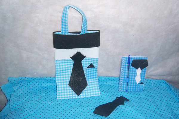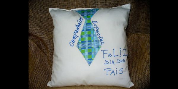 Comece separando todos os materiais que você vai utilizar em seu artesanato. Risque no tecido ou no feltro um formato de gravata, contado com um losango e um triângulo ao contrário ou com a silhueta de sua preferência para a gravata. Recorte. Cole esta gravata de tecido ou gravata de feltro na parte da frente da almofada ou da capa para almofada. Para finalizar a sua peça, escreva a mensagem que você quiser ao redor da gravata em sua almofada. E está pronto!