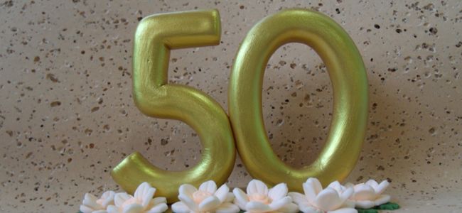 Independente de a festa de 50 anos seja para uma pessoa ou para um casamento, o importante é caprichar nos detalhes. O artesanato pode entrar em cena em vários quesitos, como convites, lembrancinhas, decoração das mesas dos convidados, decoração do bolo, decoração do painel, entre outros. A lembrancinha pode ser simples, mas nem por isso sem-graça. Uma caixinha de acrílico com aplique de 50 anos e com um pedaço de tule arrematando-a, por exemplo, pode ser usada tanto para bodas quanto para aniversário e fazer muito sucesso. Só atente para o fato de que a decoração da caixinha deverá ter as mesmas cores do restante da decoração da festa.