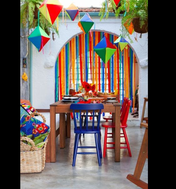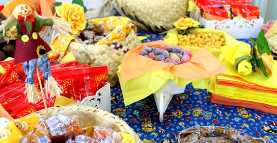 Se você não quer ter muito trabalho no momento de usar o papel de seda em sua festa junina, use-o como “forro” de bandejas de doces, para colorir a sua festa. E você pode incrementar ainda mais a sua festa optando por papel de seda vermelho, laranja e amarelo, para simular fogueiras, itens típicos da festa junina.