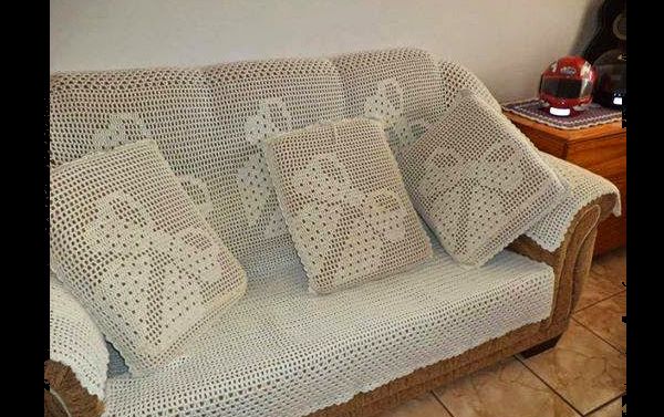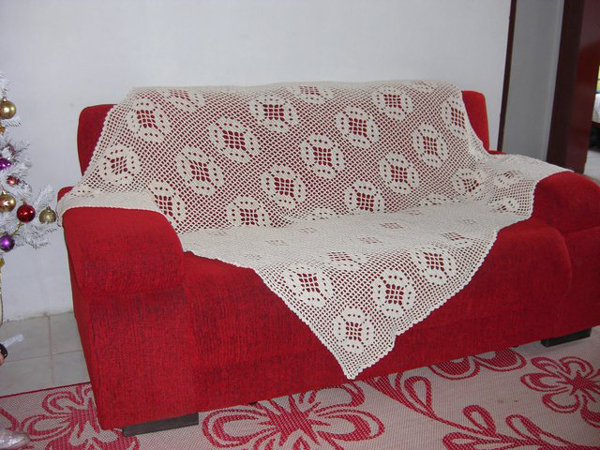 Caso você esteja com muita disposição e tempo livre, pode fazer a capa de crochê para todos os sofás de seu ambiente e também fazer as almofadas com o mesmo padrão, para montar um joguinho charmoso para o seu espaço.