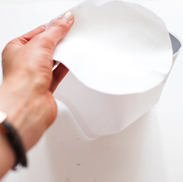 Logo após, meça em sua peça o diâmetro formado e corte um círculo no tecido com esta medida. E costure este círculo em sua peça, com cuidado para não ficar torto ou repuxando.