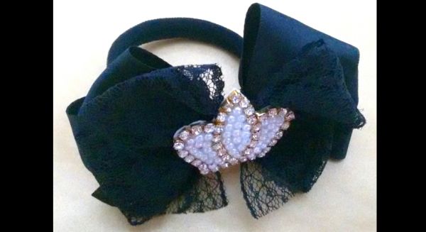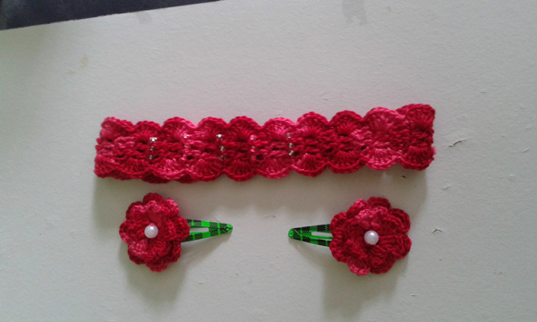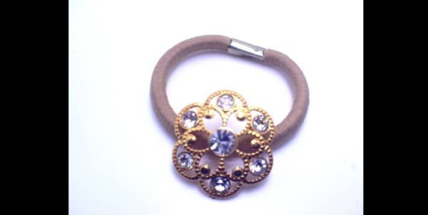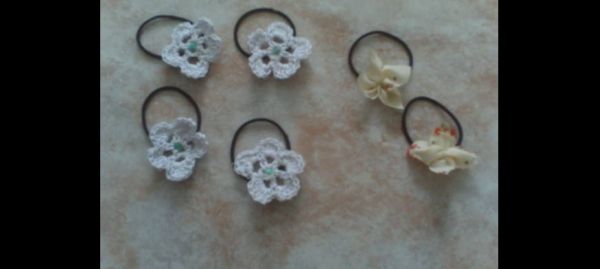 Se você sabe fazer crochê você pode fazer uma flor de crochê e fixar esta flor de crochê no elástico para cabelo. E neste caso também você pode acrescentar pedrarias ao seu acessório de cabelo.