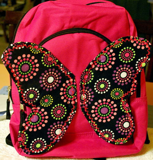 Mães de filhas fashionistas pode acrescentar uma asa de borboleta feita de tecido à mochila de sua menina. Se não tiver máquina de costura faça as asas costurando à mão.