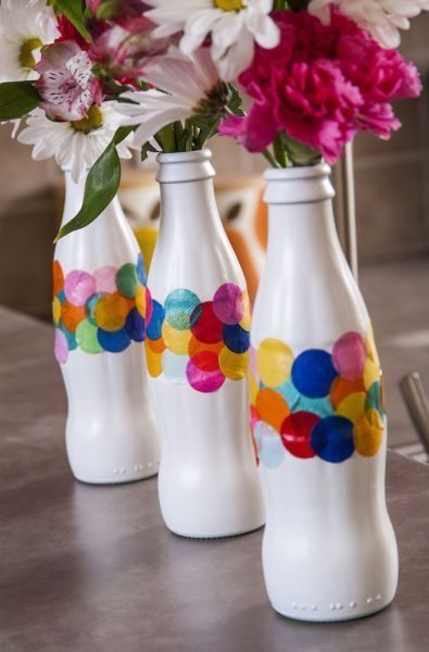 Créditos:http://modpodgerocksblog.com/2015/03/diy-confetti-vases-made-from-bottles.html