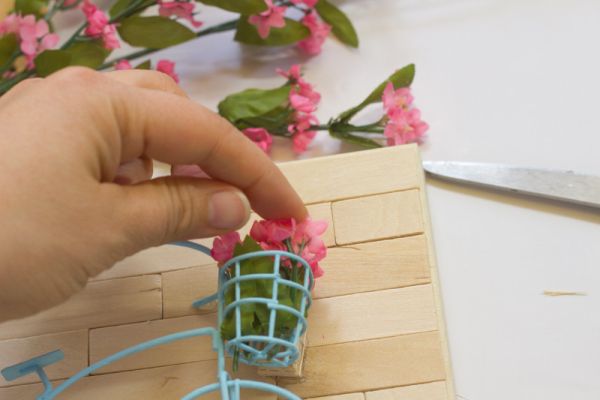 Em seguida, para finalizar a sua peça, basta acomodar dentro da cestinha da sua bicicleta algumas flores artificiais bem pequenas de sua preferência. E está pronto!