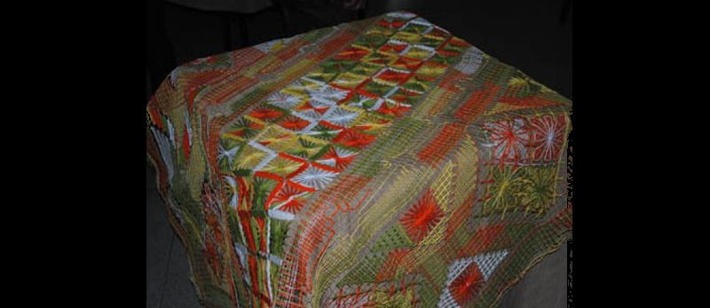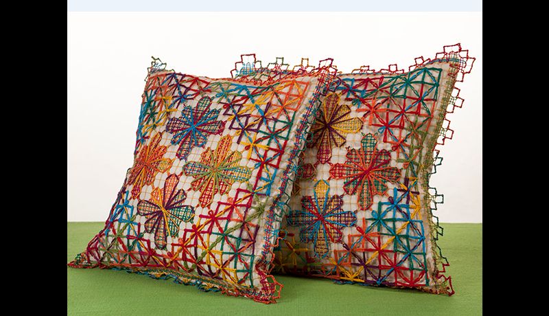 Entre os artesanatos com bordados filé há também peças para casa, como colchas, almofadas, toalhas de mesa, caminhos de mesa, entre outras. Veja mais fotos de bordado filé.