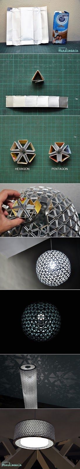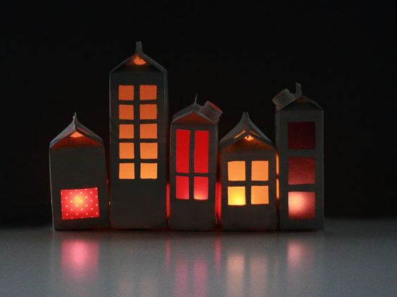 Faça luminárias com caixas de leite. Este artesanato é para quem tem muitas caixas guardadas em casa.
