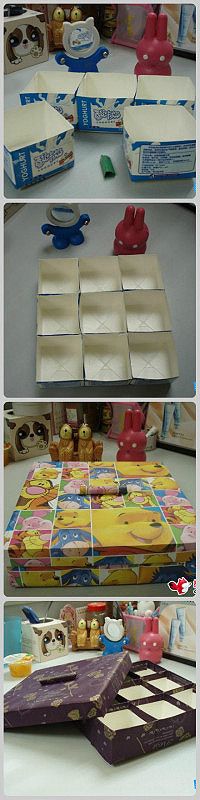 O organizador está entre os artesanatos com caixa de leite preferido. Corte uma parte da caixa de leite, encape a caixa por dentro e também por fora e acrescente o enfeite que você desejar, ou acrescente uma alça, para facilitar o momento de puxar e pegar o que você quer dentro da caixa.