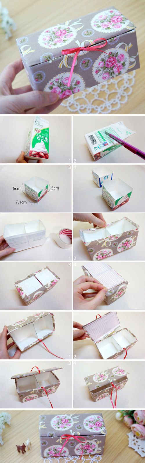 Você pode fazer caixinhas com caixas de leite, para presentear ou para guardar miudezas.