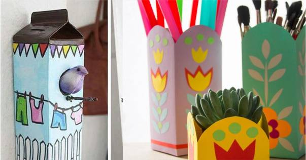 Artesanatos com caixa de Leite