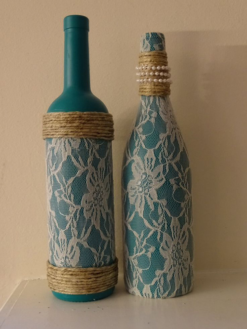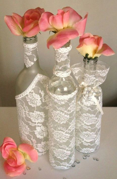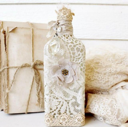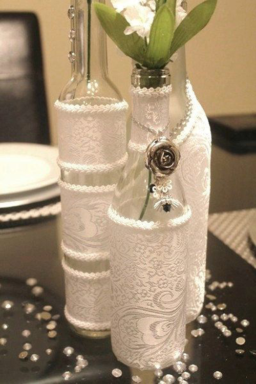 Renove o visual de sua casa de forma barata vendo estes 24 Artesanatos com garrafa de vidro e renda que vão te inspirar.
