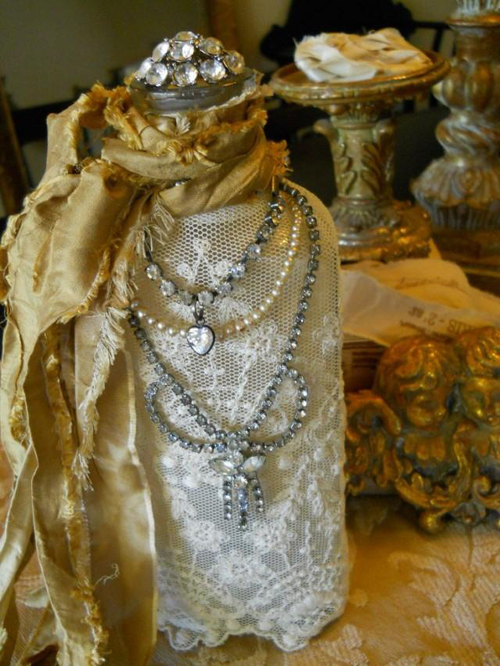 Modelos de Artesanatos com Garrafa de Vidro e Renda