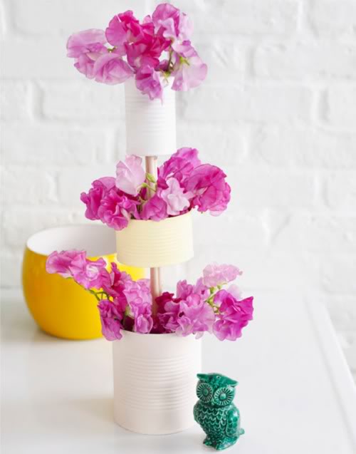 E para diversificar ainda mais os seus trabalhos manuais, misture latas de milho a latas de outros produtos, com outros formatos e tamanhos.