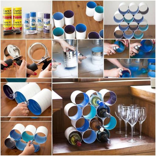 Para fazer um porta-vinhos com latas de milho você irá precisar de: