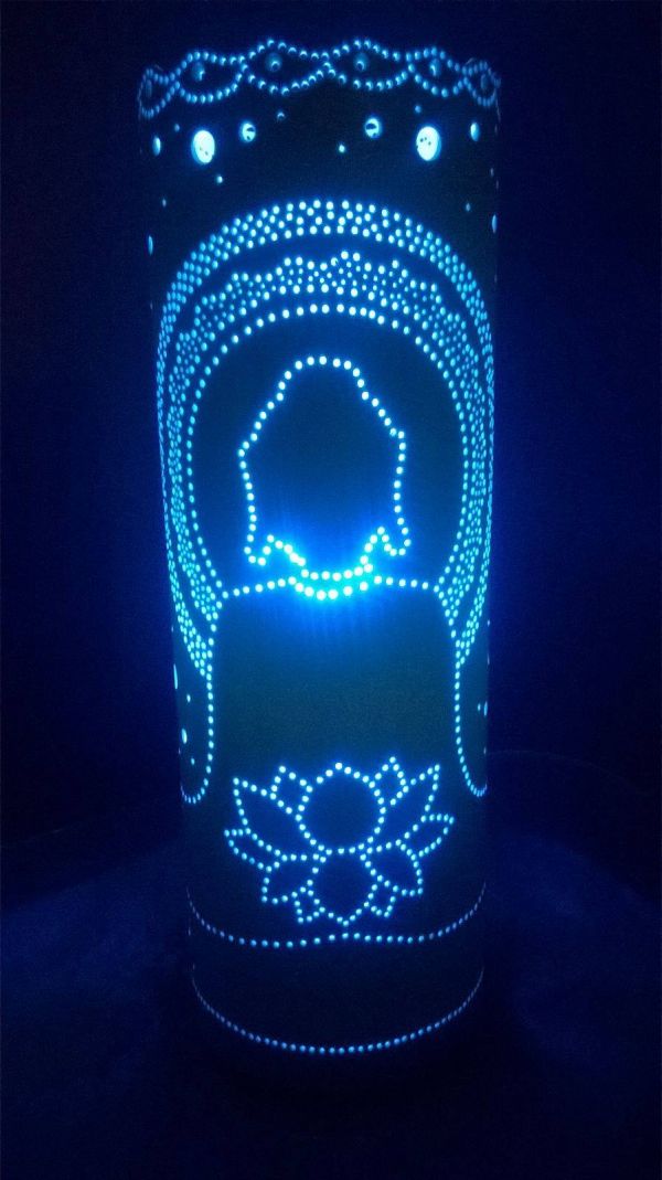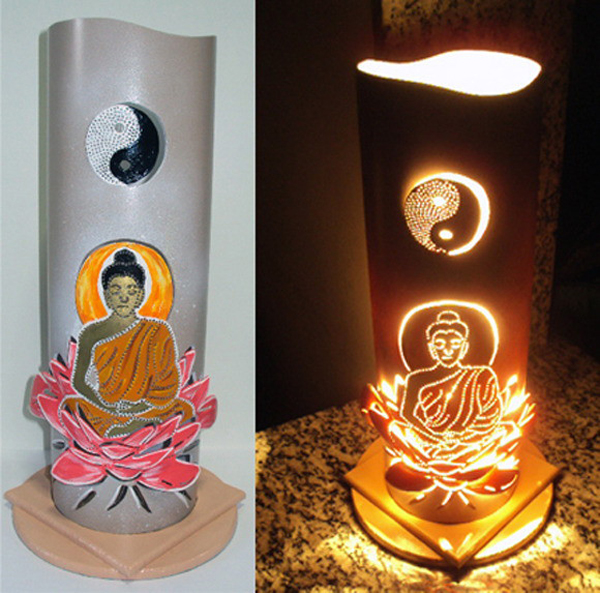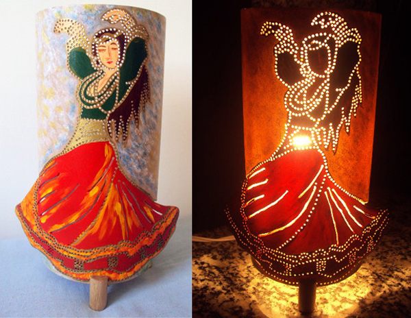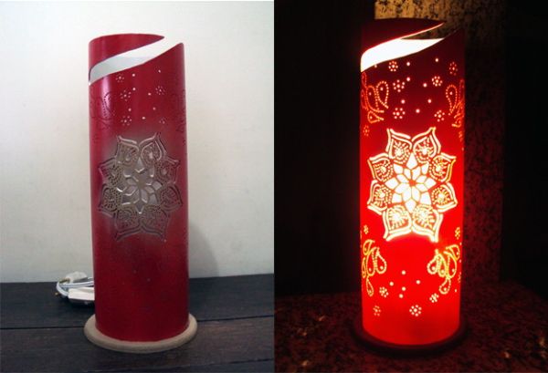 E quem já alcançou um nível alto em relação aos artesanatos com luminárias de PVC pode fazer pinturas nas partes recortadas do cano de PVC, usando tintas acrílicas, até mesmo as tintas metalizadas. Vale também colar pedaços de EVA, tecidos ou papéis nas partes levantadas de sua luminária, se você quiser.
