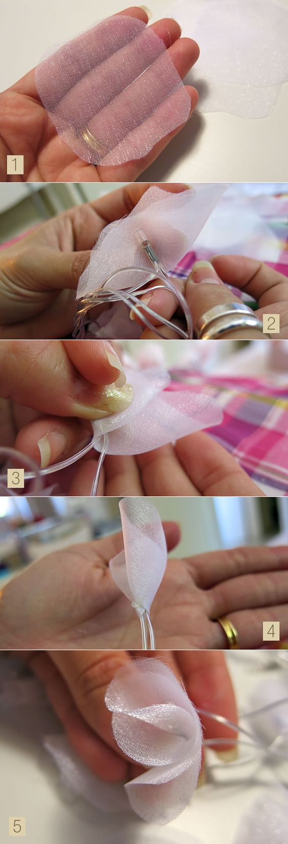 Para fazer customização de pisca-pisca com flor de tecido você irá precisar de: