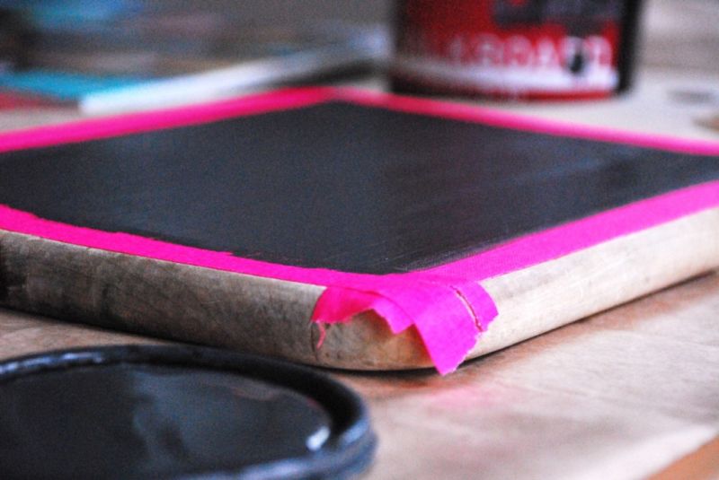 Pinte a parte delimitada da tábua de carne com a tinta lousa.