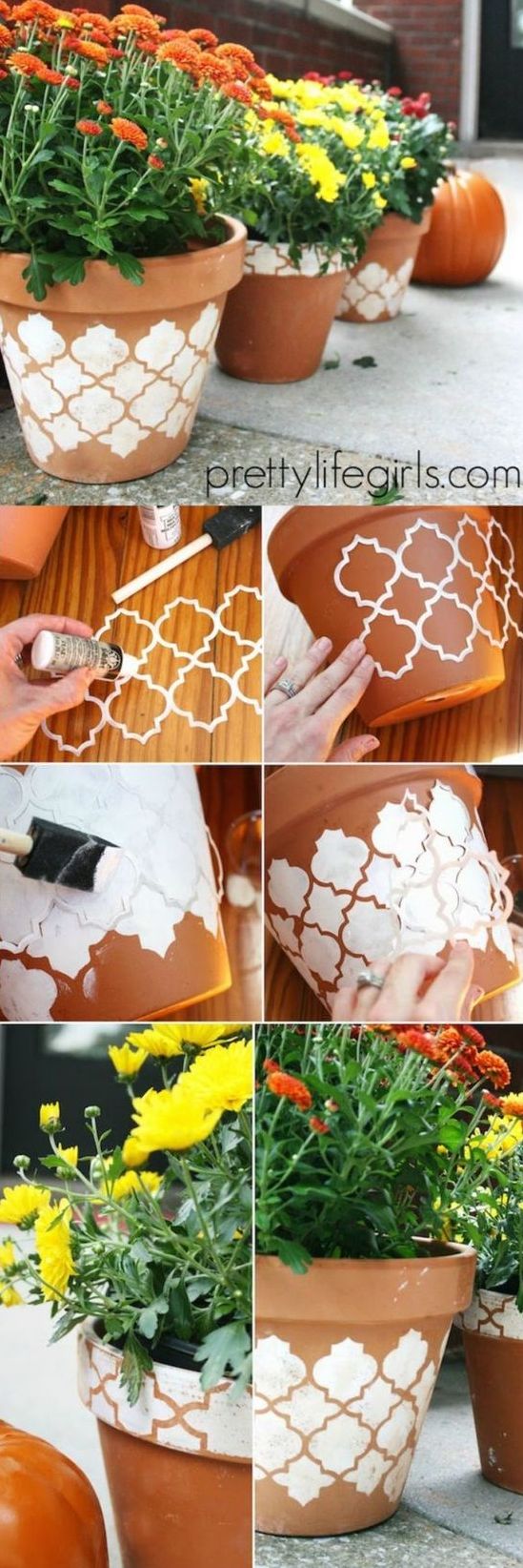 Usar estêncil também é uma maneira muito prática de decorar um vaso de barro. E o vaso decorado pode assumir diversas facetas em seus artesanatos.