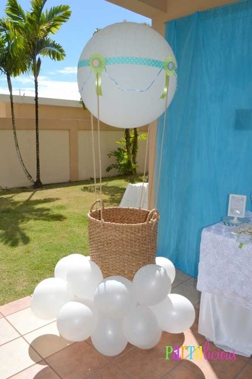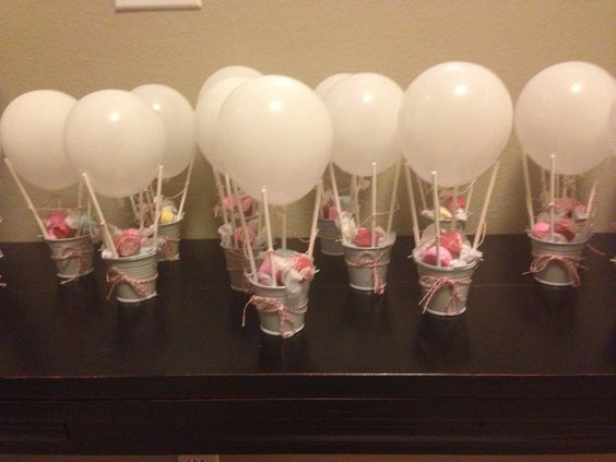 Vale também criar balões de papel ou utilizar o próprio balão de plástico cheio para simular balões em sua festinha.
