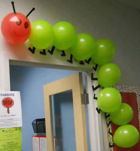 Outra forma simples, mas criativa, de usar balões na decoração e de sua festa é posicionando vários balões como se fosse o corpo de uma centopeia. Cole patinhas de papel ao redor do corpo da centopeia e faça a carinha no balão que é a cabeça do bichinho, com o auxílio de caneta preta.