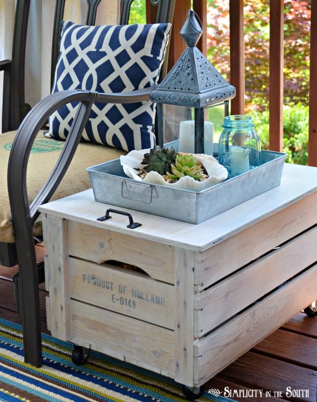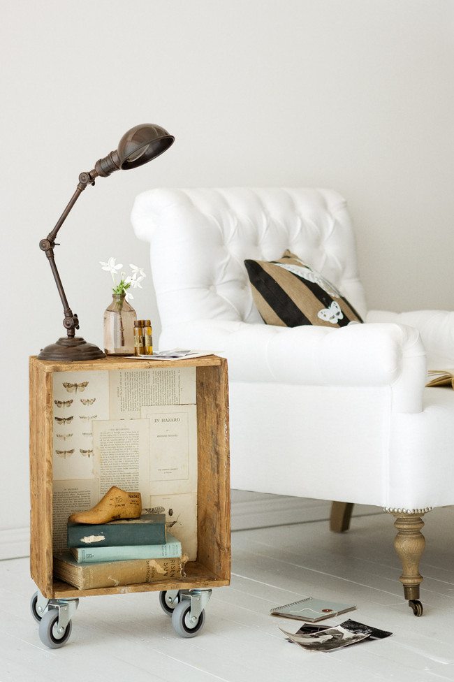 Crie móveis para a sua casa com caixas de feira, como mesinhas de apoio ou criado-mudo, que podem ter rodízios, para facilitar a limpeza.
