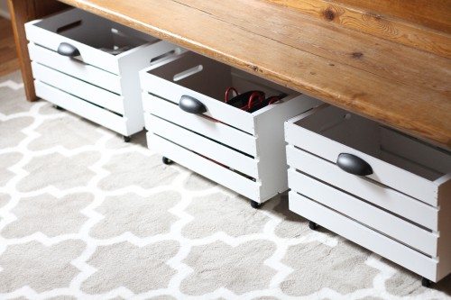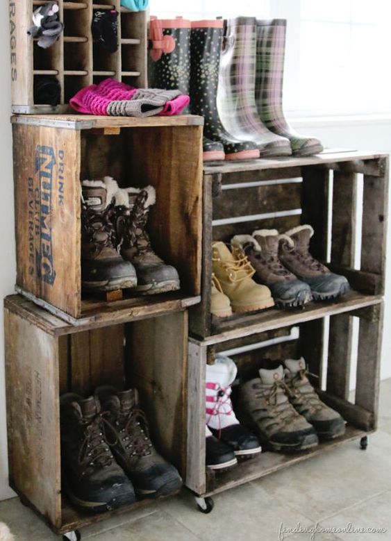Crie também nichos para parede, organizadores para debaixo da cama, estantes, racks e sapateiras, entre outros itens, com caixas de feira de madeira.