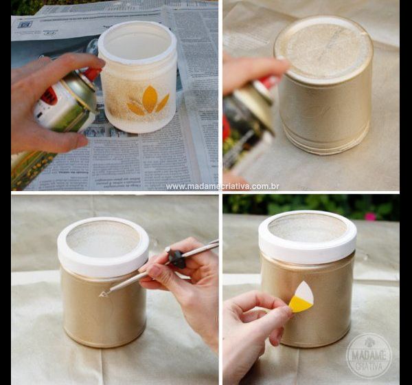 Para customizar potes de vidro com tinta em spray você irá precisar de:
