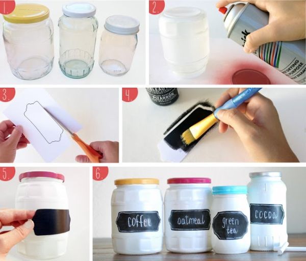 Comece separando todos os materiais que você vai utilizar em seu artesanato. Forre o local onde você vai trabalhar com a sua peça, com jornal velho, papel velho, papelão, tecido velho ou plástico. Pinte o pote de vidro e a tampa com as cores de tinta em spray que você quiser. Se você quiser uma cor mais forte e intensa, aplique duas ou até mesmo três camadas de tinta, porém sempre deixando a tinta secar muito bem entre uma camada e outra. E deixe a tinta secar muito bem. Para finalizar a sua peça, crie uma etiqueta com tinta lousa ou recorte uma etiqueta no papel contact preto. Fixe no pote de vidro e escreva o que você quiser. E está pronto!