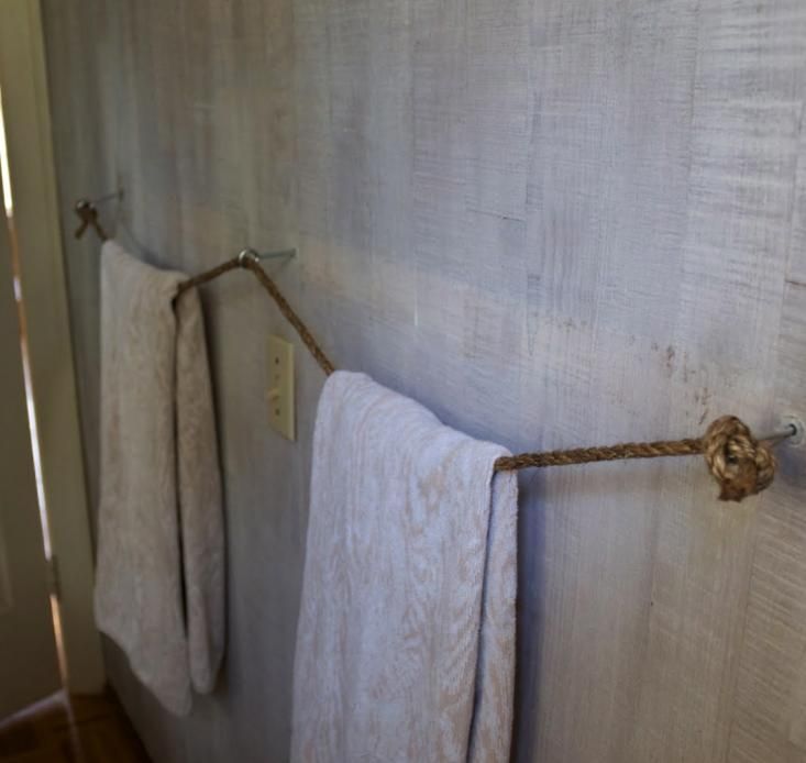 Pouco dinheiro também não pode ser desculpa para redecorar o seu banheiro ou deixá-lo mais funcional. Amarre um pedaço de corda em pregos e consiga um suporte para toalha. Item barato, mas muito charmoso, que vai trazer o estilo rústico para o seu banheiro.