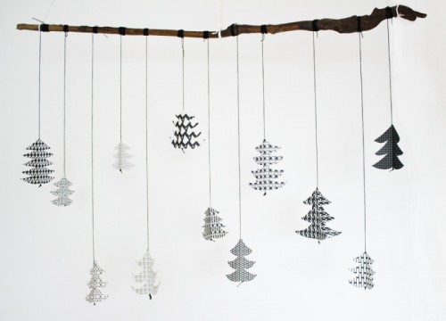 Comece separando todos os materiais que você vai utilizar em seu artesanato. Desenhe no papelão alguns formatos de árvore de Natal de sua preferência. Recorte todas as peças que você quer fazer. Encape os dois lados da miniárvore de Natal com pedaços da fita adesiva escolhida. Fure a parte superior da miniárvore e passe a árvore pelo cordão, fazendo um nó antes e outro nó depois da árvore, para não escorregar. Você pode usar este cordão de Natal para enfeitar a parede, o balcão, a árvore de Natal e até a sua porta.