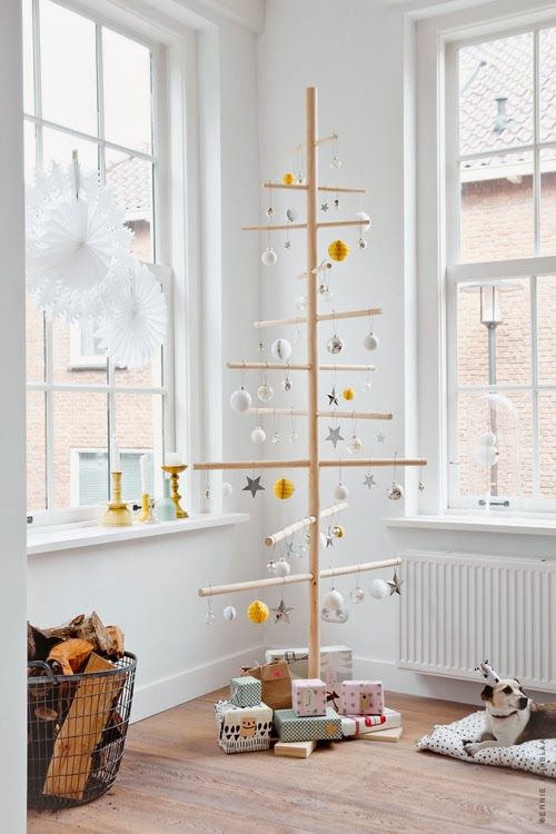 Com varetas de madeira que você tem em casa você pode fazer a sua árvore de Natal. E como enfeites pode usar objetos que também já possua em casa ou fazer os seus próprios enfeites natalinos.