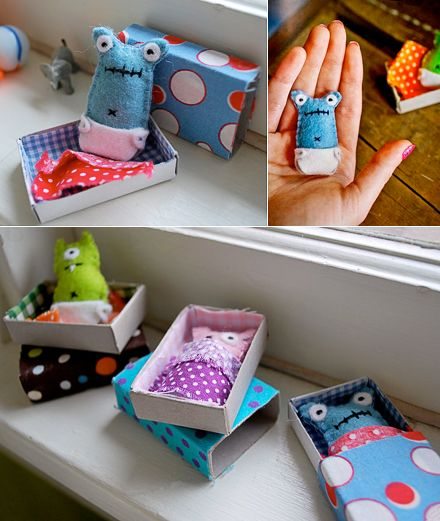 Para as meninas faça caminhas com as caixas de fósforos, para bichinhos bem pequenos. Customize a caixinha de fósforo ou utilize a caixinha em sua versão original.