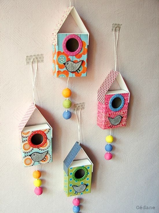 Você também pode fazer enfeites estilizado para parede, em formato de casinha, com caixas de fósforos.