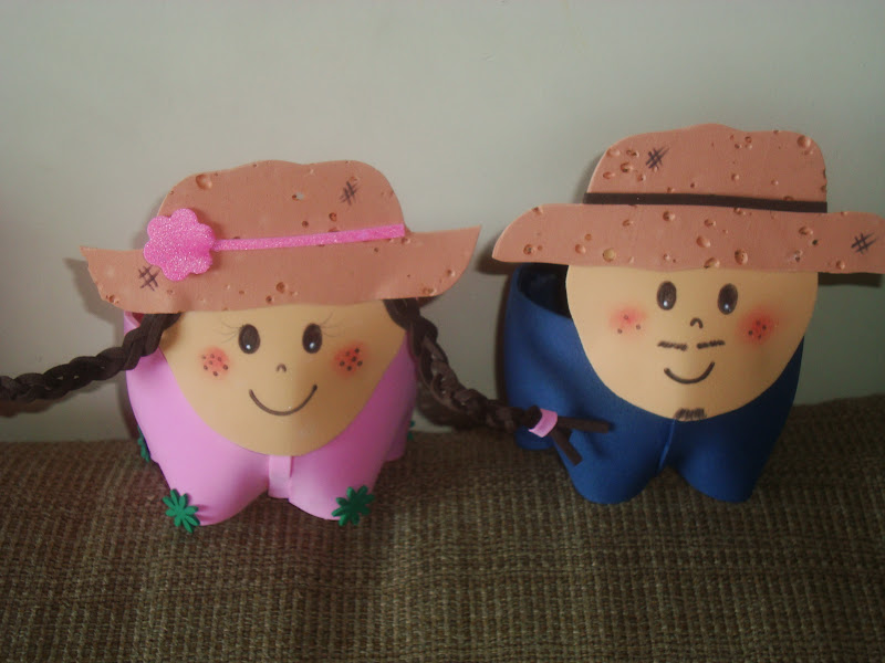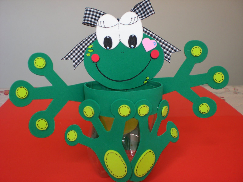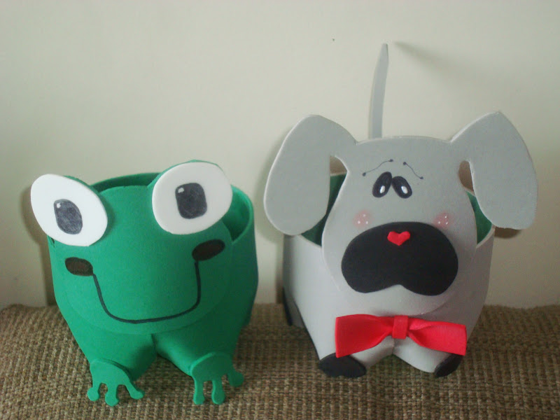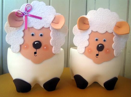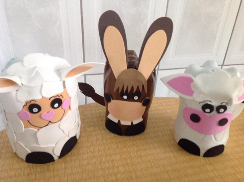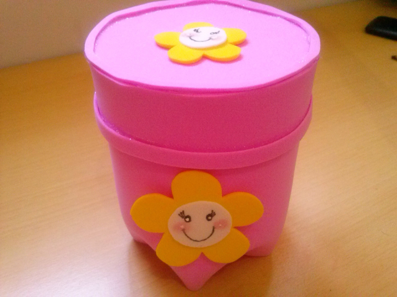 Você pode fazer lembrancinhas com EVA e garrafa pet, Porta-trecos de garrafa pet e EVA, brinquedos de EVA e garrafa pet, centro de mesa de garrafa pet e EVA, entre muitos outros artesanatos.