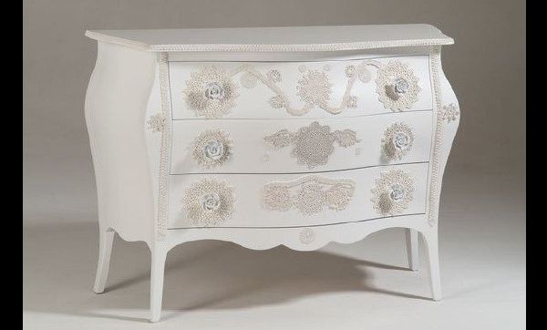 Você também pode usar a renda como estêncil para fazer pinturas e efeitos diferenciados em suas peças, além de usar a renda como material principal ou como aplique para enfeitar outros artesanatos. Até mesmo em reforma de móveis você pode fazer com renda, colando pedaços de renda sobre superfícies ou como detalhes ou ainda usando a renda como um estêncil para pintar detalhes na superfície de seu móvel.