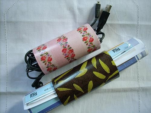 Entre os muitos artesanatos feitos com rolo de papel higiênico há os funcionais, como encapar rolos de papel higiênico para guardar fios ou papéis soltos, por exemplo.