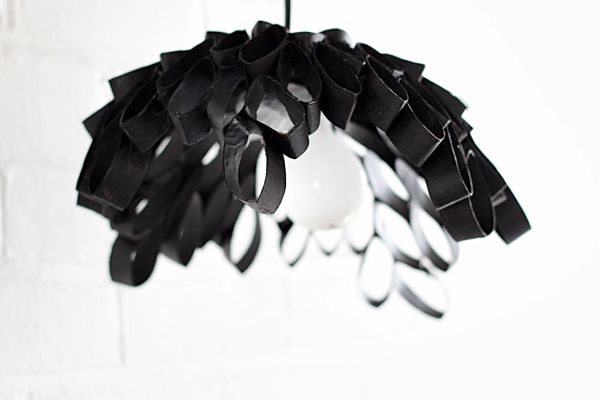 Prenda cada etapa da colagem com prendedores para roupas. Deixe secar muito bem. Siga colando mais pedaços de rolo de papel higiênico às partes que já foram coladas. Pinte todas as partes da sua luminária. Quando a tinta secar monte a fiação para luminária.