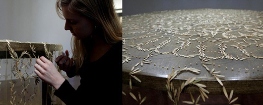 Você pode fazer até uma toalha de mesa com sementes. Cole sementes pequenas e delicadas em um tule ou organza, com uma cola bem resistente e fazendo motivos, e redecore a sua cozinha de forma glamourosa.