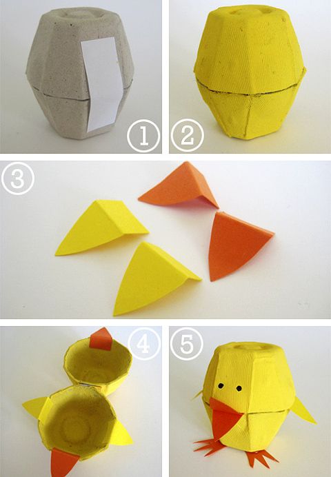 Comece separando todos os materiais que você vai utilizar em seu artesanato. Corte duas reentrâncias da caixa de ovos de papelão. Una uma parte à outra com o auxílio de um pedaço de fita adesiva. Pinte toda a peça com a tinta amarela. Deixe secar muito bem. Corte dois triângulos compridos no papel amarelo e dois triângulos iguais no papel laranja. Abra a peça e cole os dois triângulos amarelos na parte inferior, como se fossem asas. Cole um triângulo laranja na parte superior e outro na parte inferior, para ser o bico. Feche a peça e cole patinhas feitas com papel laranja e faça os olhos com tinta preta ou com caneta preta. Este artesanato é ótimo para trabalhar em sala de aula, pois com uma caixa de ovos é possível fazer vários pintinhos.