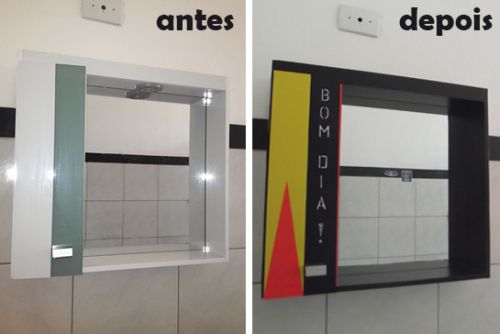 O armarinho do seu banheiro também pode receber pintura ou aplicação de recortes de papel contact ou papel de parede.