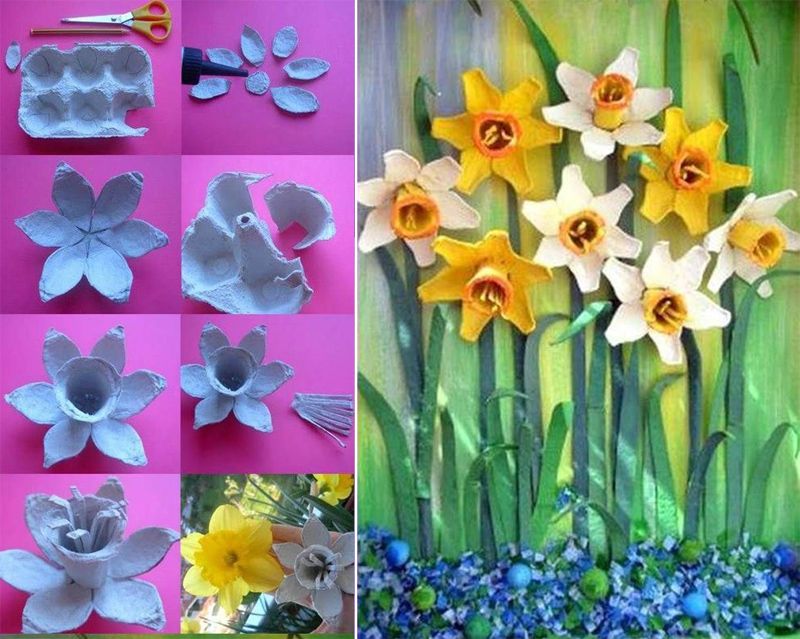 Entre os artesanatos legais com caixa de ovo há flores, quadros decorativos, luminárias, quadros decorativos, entre muitos outros artesanatos que podem ser feitos com caixa de ovos.