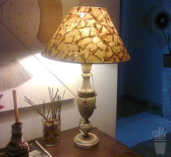 Você também pode revestir outros objetos com coador de café usado, como abajur, garrafas, luminária, tigelas, entre outras. Aqui também você deve impermeabilizar muito bem a sua peça após colar os filtros de café sobre a superfície.