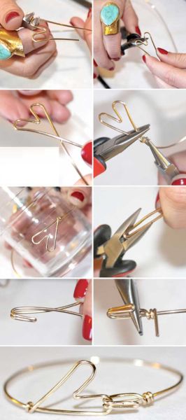 Ainda para deixar você mais bonita e com visual interessante para o dia dos namorados, faça um bracelete de coração. Para isso você irá precisar de arame grosso para fazer bijuteria e de um alicate para bijuteria. Modele a ponta do arame formato um coração, faça o arco do punho utilizando um copo, para facilitar o trabalho, e na outra ponta do arame faça um gancho. E está pronto!