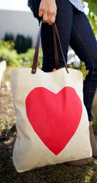 Para você ficar mais charmosa para desfrutar com muito mais intensidade o dia dos namorados você pode fazer uma linda e romântica bolsa. Basta você costurar dois retângulos, deixando a parte superior aberta. Fazer a barra nesta parte que ficou aberta. Pregar as alças. E pintar com tinta para tecido ou tinta acrílica, um coração, na parte da frente da bolsa.