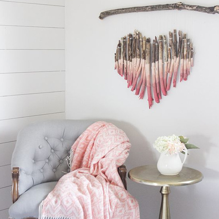 Um galho maior de madeira pode ser o suporte e os menores serem pendurados por fios de nylon. Se você quiser um charme a mais, pinte as pontas inferiores da peça em degradê.