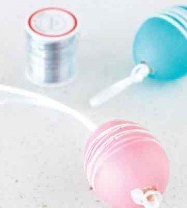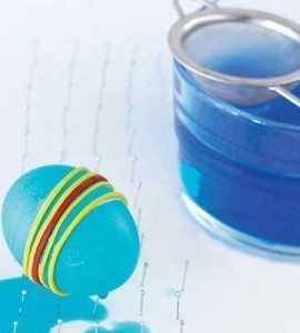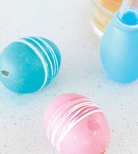 Em seguida, após os ovos estarem totalmente secos, retire os elásticos que estavam posicionados sobre eles, para conseguir o detalhe colorido no meio das cascas dos ovos.
