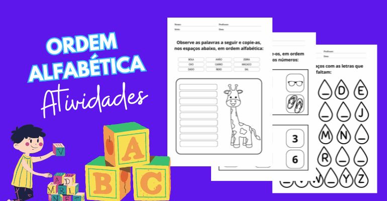 Veja abaixo algumas sugestões de atividades de ordem alfabética para imprimir. É possível encontrar muitos materiais disponíveis online, com download gratuito. Veja algumas referências para fazer suas pesquisas:
