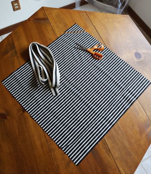 Em seguida, faça uma barra ao redor de todo o quadrado de tecido.